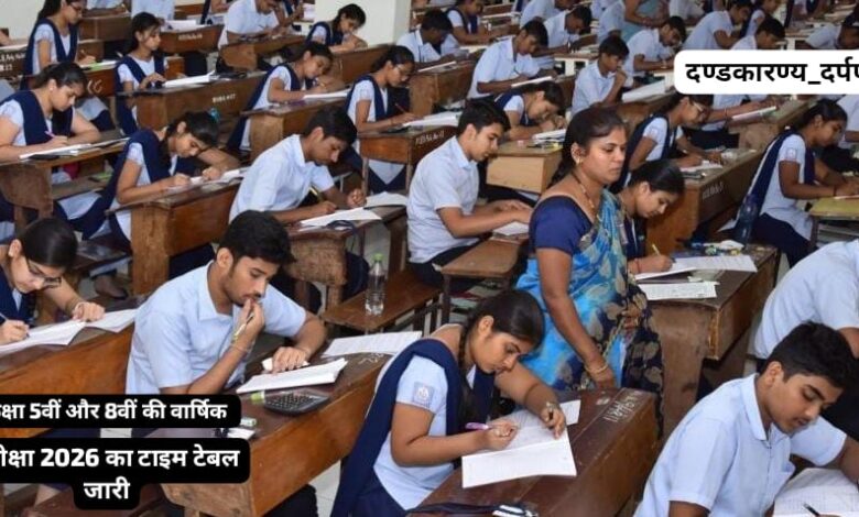 Chhattisgarh: स्कूल शिक्षा विभाग और लोक शिक्षण संचालनालय ने : कक्षा 5वीं और 8वीं की वार्षिक परीक्षा 2026 का टाइम टेबल जारी…