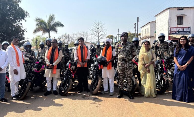 Chhattisgarh: जिला के प्रभारी मंत्री श्री टंकराम वर्मा एवं माननीय मंत्री श्री केदार कश्यप ने नारायणपुर पुलिस को हाई टेक करने के उद्देश्य से नक्सल विरोधी अभियान के लिए डीआरजी जवानों को 200 मोटर साइकिल किया सुपुर्द