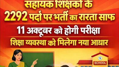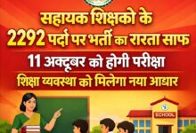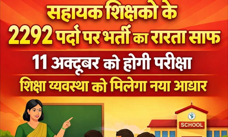 सहायक शिक्षकों के 2292 पदों पर भर्ती का रास्ता साफ, 11 अक्टूबर को होगी परीक्षा,…