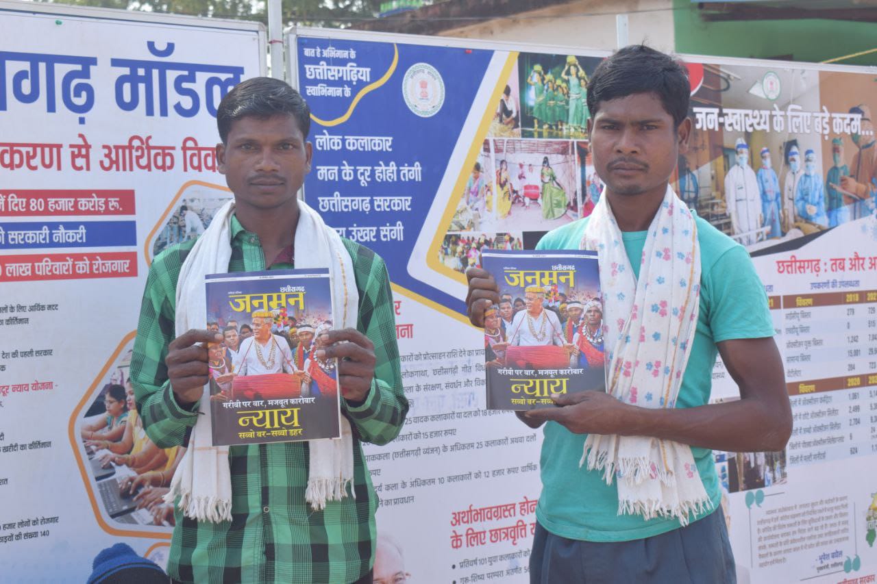 प्रदर्शनी में शासन की जनकल्याणकारी योजनाओं और उपलब्धियों पर आधारित जनसंपर्क विभाग द्वारा प्रकाशित मासिक पत्रिका जनमन,राजीव गांधी ग्रामीण भूमिहीन कृषि मजदूर न्याय योजना ब्रोशर एवं विभिन्न योजनाओं के फ्लायर्स सहित अन्य प्रचार सामग्री का निःशुल्क वितरण किया गया,जिसकी आमजनों ने काफी सराहना की। गौरतलब है कि फोटो प्रदर्शनी के माध्यम से छ.ग.शासन की महत्वाकांक्षी योजना नरवा,गरूवा,घुरूवा एवं बाड़ी के क्रियान्वयन, समर्थन मूल्य पर धान खरीदी,राजीव गांधी न्याय योजना, मनरेगा,मुख्यमंत्री सुपोषण अभियान सहित कृषि विभाग द्वारा संचालित योजनाओं को प्रदर्शित किया गया है।