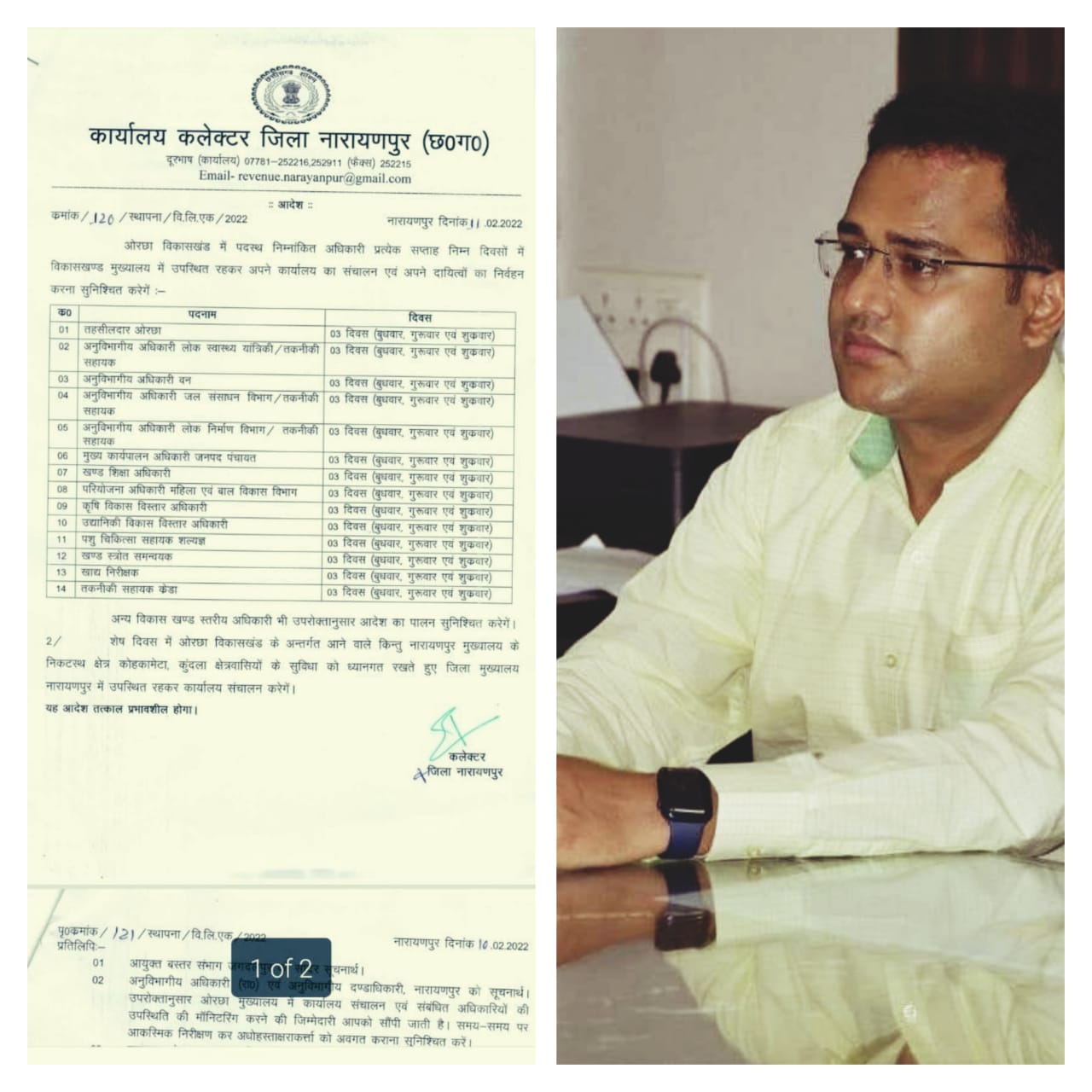 बुधवार, गुरुवार और शुक्रवार यह मात्र दिनों के नाम नहीं कलेक्टर ने जारी किया आदेश अबूझमाड़ विकासखंड में पदस्थ अधिकारियों को अबूझमाड़ के मुख्यालय में उपस्थित होकर अपने कार्यालय का संचालन कर अबूझमाड़ वासियों का अधूरा काम पूरा करेंगे।