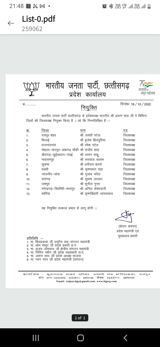 13 ज़िलों में नए ज़िलाध्यक्ष की हुई नियुक्ति