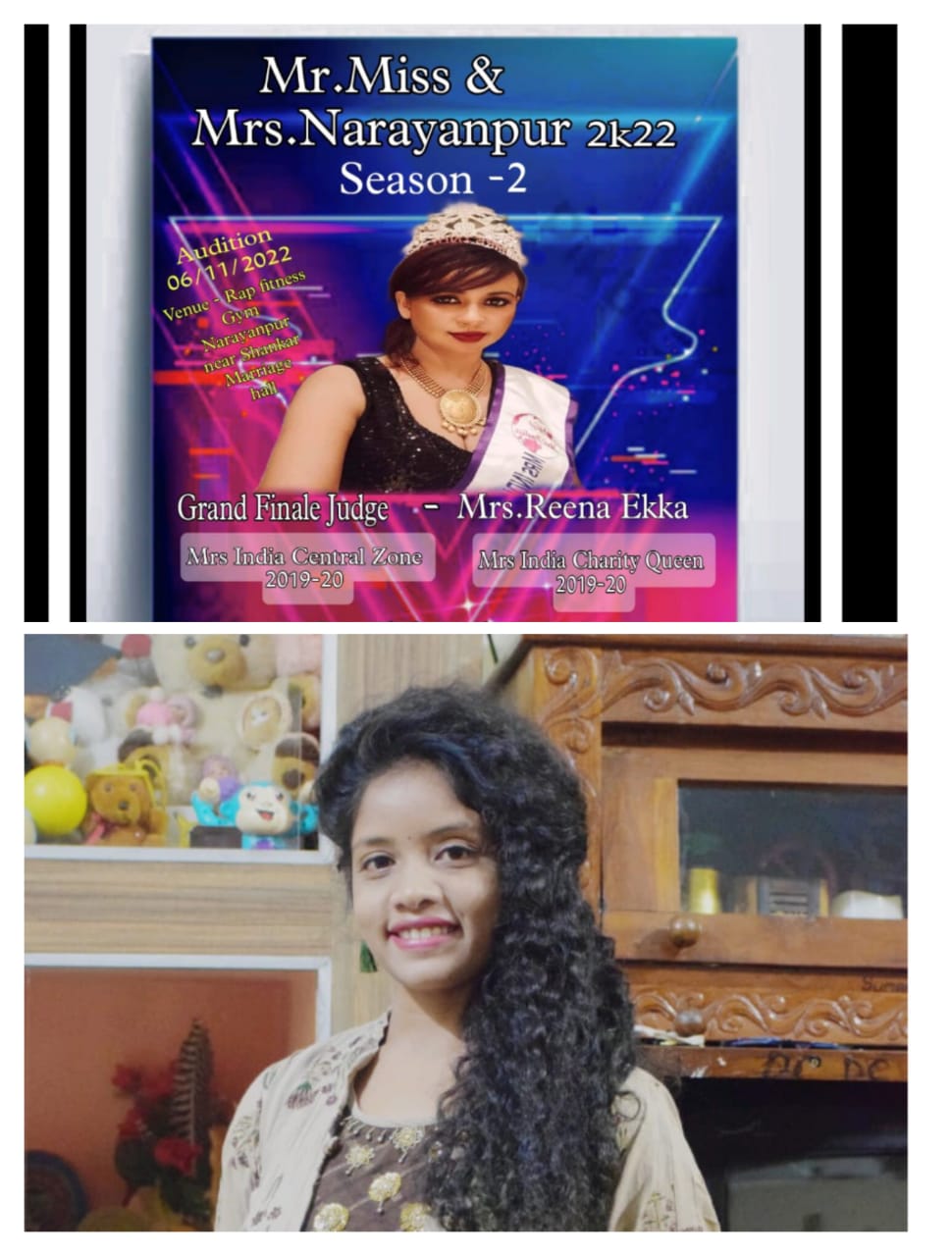 जिसका ऑडिशन 6 नवंबर 2022 को Rap फिटनेस जिम में रखा गया है । इसमें मिस्टर एंड मिस नारायणपुर के लिए आयु सीमा 16 से 35 वर्ष तक तथा बच्चों की आयु सीमा 4 साल से 15 वर्ष तक रखी गई है।