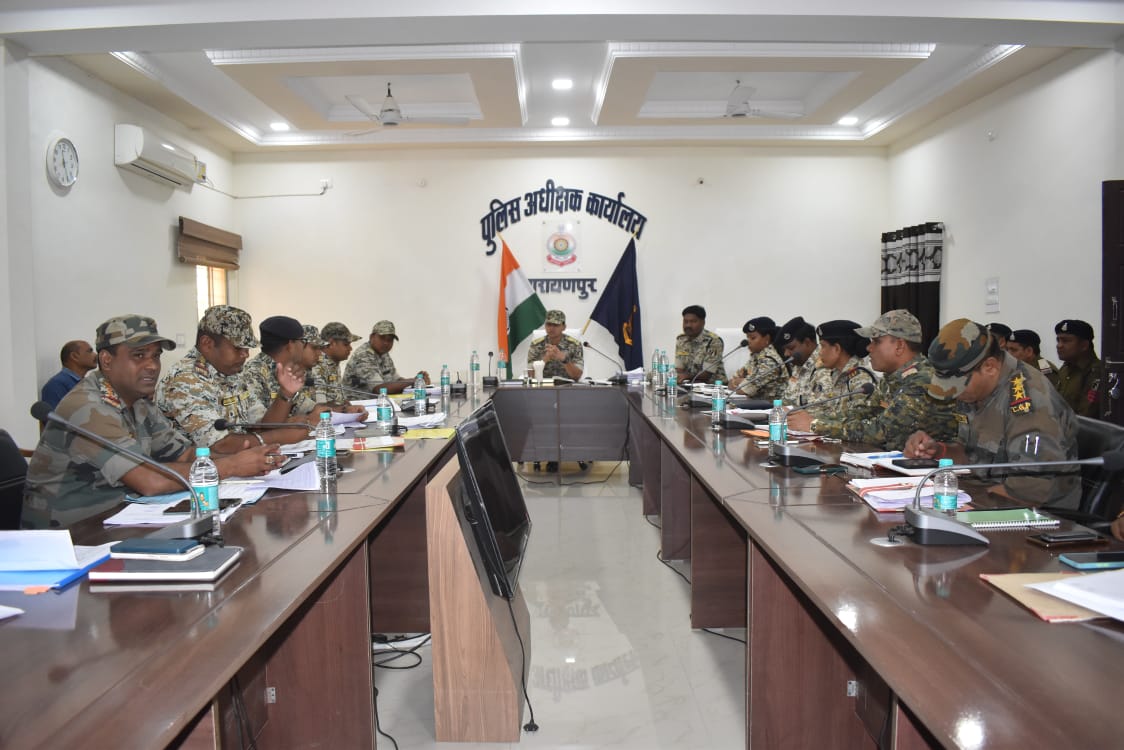 जिले में नव पदस्थ पुलिस अधीक्षक पुष्कर शर्मा (भा.पु.से) के द्वारा पुलिस अधीक्षक नारायणपुर के पद पर पदभार ग्रहण करने के पश्चात् पुलिस अधीक्षक कार्यालय के सभाकक्ष में जिले के सभी राजपत्रित अधिकारियों, थाना एवं कैम्प प्रभारियों, डीआरजी प्रभारी एवं पुलिस कार्यालय के विभिन्न शाखाओं के प्रभारी अधिकारियों की मीटिंग लिया गया। उक्त मीटिंग में श्री शर्मा ने सम्पूर्ण जिले में पुलिसिंग के संबंध में समीक्षा कर भविष्य की कार्ययोजना के संबंध में आवश्यक निर्देश दिया गया है। श्री शर्मा ने जिले में नक्सल विरोधी अभियान में तेजी लाने एवं विकास कार्यों में सुरक्षा बल के सकारात्मक भूमिका निभाने हेतु निर्देश दिया गया है। जिले में अपराध नियंत्रण एवं कानून व्यवस्था हेतु प्रभावी पुलिसिंग एवं पेट्रोलिंग पर विशेष ध्यान देकर कार्यवाही करने हेतु निर्देश दिया गया है। साथ ही जिले में सामुदायिक पुलिसिंग के अतंर्गत अभियान चलाकर जन जागरूकता अभियान चलाने एवं आम जनता के साथ मधुर संबंध स्थापित कर पुलिसिंग में जनसहयोग की महत्वपूर्ण भुमिका होना एवं जिस दिशा में कार्य करने हेतु निर्देशित किया गया, साथ ही महिलाओं, बच्चों के सुरक्षा एवं सायबर अपराध में गंभीरता से कार्यवाही करने निर्देशित किया गया है। इसके अतिरिक्त आपराधिक गतिविधियों एवं आपराधिक तत्वों पर कडी वैधानिक कार्यवाही करने एवं पुलिस विभाग में उच्च स्तर का अनुशासन एवं व्यवहार का पालन करने निर्देशित किया गया है।