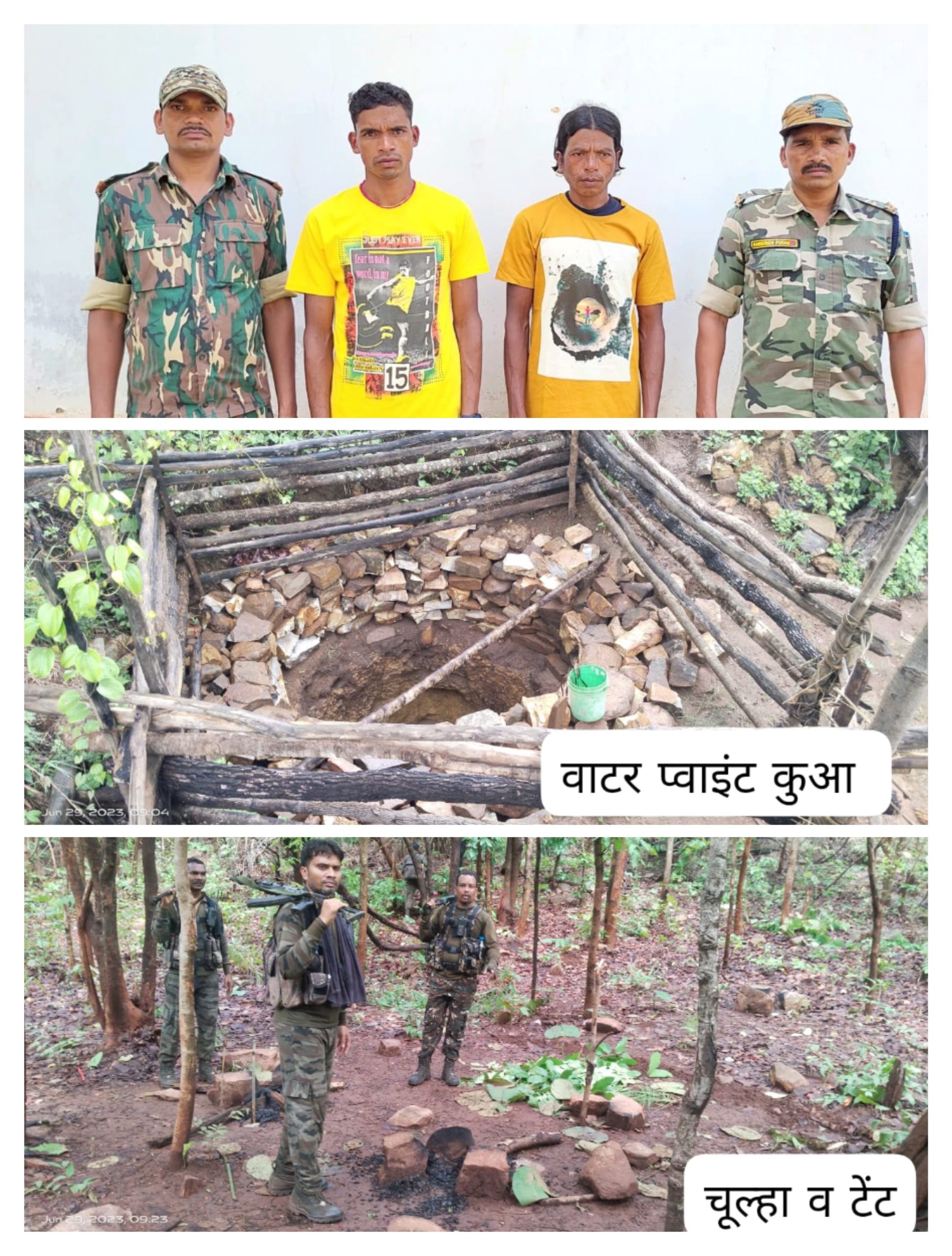 थाना धनोरा से रवानाशुदा डीआरजी एवं आईटीबीपी की टीम के भटबेड़ा के जंगल में सर्चिंग के दौरान, नक्सलियों के द्वारा पूर्व से लगाये गये संत्री द्वारा पुलिस बल के आने की सूचना देकर नक्सलियों को अलर्ट कर दिया जिस पर नक्सली जंगल का फायदा उठाकर मौके से भाग गये। पुलिस बल द्वारा मौके पर नक्सल कैम्प को ध्वस्त किया गया एवं मौके से नक्सलियों का दैनिक उपयोगी सामान एवं आईईडी में उपयोग होने वाले लोहे के स्प्लिंटर बरामद किया गया है।
