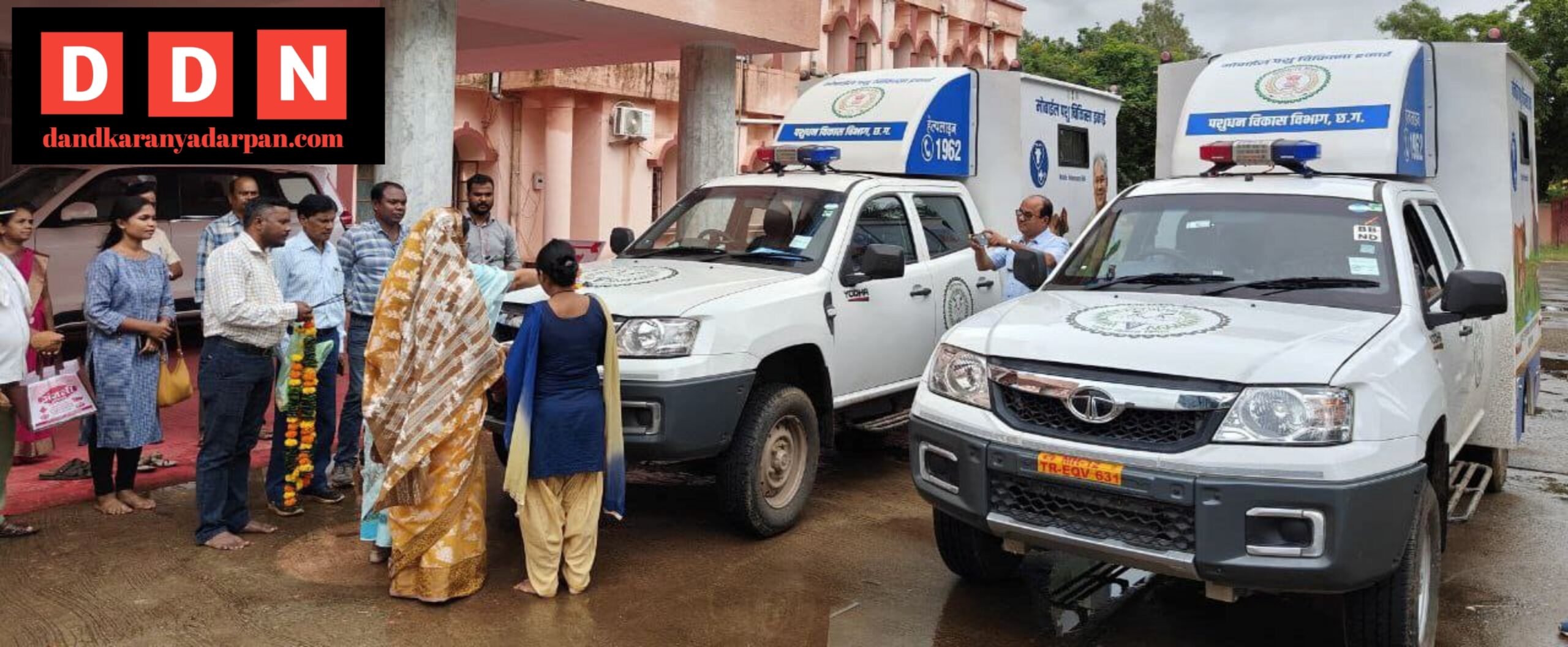 नारायणपुर, 14 सितंबर 2023 – नारायणपुर जिले के पशुपालकों के लिए पोला त्योहार एक नई खुशियां लेकर आया है। जिले के दोनों विकासखण्ड के लिए मोबाइल वेटनरी यूनिट की दो गाड़ियों को जिला पंचायत अध्यक्ष श्रीमती श्यामबती रजनू नेताम, नगरपालिका अध्यक्ष श्रीमती सुनीता मांझी, जिला पंचायत उपाध्यक्ष श्री देवनाथ उसेंडी, कलेक्टर श्री अजीत वसंत एवं जिला पंचायत सीईओ श्री देवेश ध्रुव ने हरी झंडी दिखाकर रवाना किया। मोबाइल वेटनरी यूनिट में एक डॉक्टर, एक पैरावेट, और एक ड्राइवर सह अटेंडेंट की नियुक्ति की गई है। ये इकाई गोठान ग्राम एवं अन्य गांवों पहुंचकर किसानों और पशुपालकों को पशु चिकित्सकीय सेवायें जैसे उपचार, औषधि वितरण, कृमिनाशक दवापान, टीकाकरण, कृत्रिम गर्भाधान जैसे पशु संरक्षण एवं संवर्धन गतिविधियों को संपादित करेगी। पशुधन विकास विभाग के मार्गदर्शन में दैनिक रोस्टर अनुसार एक इकाई प्रतिदिन दो गोठान में अपनी सेवायें देगी। कार्यक्रम में उपस्थित जनप्रतिनिधियों एवं कलेक्टर महोदय ने जिले के सभी किसानों से अपील किया कि इस सेवा का उपयोग कर उन्नत पशुपालन के माध्यम से ज्यादा लाभ अर्जित करें।