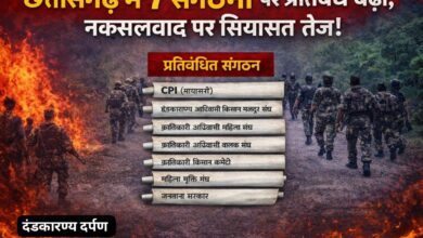 दंडकारण्य दर्पण छत्तीसगढ़ में 7 संगठनों पर प्रतिबंध बढ़ा, नक्सलवाद पर सियासत तेज रायपुर/बस्तर छत्तीसगढ़ में नक्सलवाद को लेकर एक…