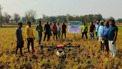 करलखा में किसानों के खेत में हुआ ड्रोन का प्रदर्शन कृषि में ड्रोन का प्रयोग किसानों के लिए लाभ का सौदा