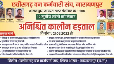 वेतन विसंगति में सुधार करने सहित 11 सूत्री मांगों को लेकर 15 हजार 600 कर्मचारी छत्तीसगढ़ वन कर्मचारी संघ के…