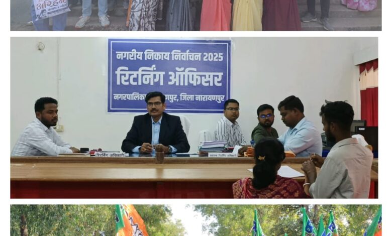 CG: नगरपालिका परिषद् के लिए दो अभ्यर्थियों ने अध्यक्ष पद के लिए नाम निर्देशन दाखिल किए पार्षद पद के लिए 40 अभ्यर्थियों ने किए नामांकन दाखिल