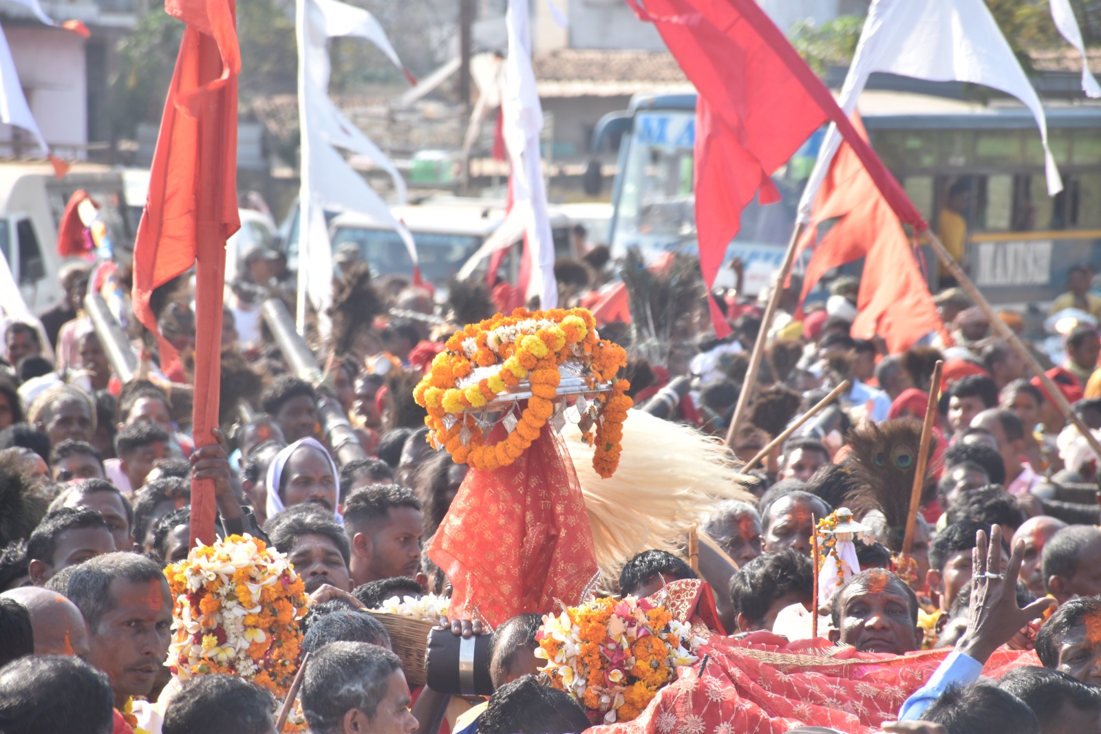 नारायणपुर, 19 फरवरी 2025// जिले की लोक संस्कृति, देव मान्यता एवं परंपरा का प्रतीक मावली मेले का पूरी श्रद्धा आस्था एवं उल्लास के साथ आज मुख्यालय में आगाज हुआ। इस क्रम में मेले का विधिवत शुरूवात माता मावली मंदिर मे पारंपरिक पूजा अर्चना परघाव के साथ हुआ। यहां आस पास के ग्रामों के स्थानीय देवी देवताओं के समागम के साथ जुलूस निकाल कर मेला स्थल मे ढाई परिक्रमा की रस्म पूरी की गई। इस रस्म के दौरान जगह जगह ग्रामीणों द्वारा सभी देवी देवताओं का विग्रहों के प्रतीक स्वरूप डंगई, लाठ, डोली, छत्र की पारंपरिक पूजा अर्चना किया गया। समागम स्थल में माता मावली, कोट गुड़ीन, शीतला माता, कोकोड़ी करीन, तेलवाड़ीन माता, कंकालीन माता, सोनकुंवर, भीमादेव सहित स्थानीय देवी देवताओं के आगमन से उपस्थित जनमानस श्रद्धा और आस्था से भाव विभोर हो गया। इनके साथ सिरहा पुजारी एवं गायता भी मौजूद थे।