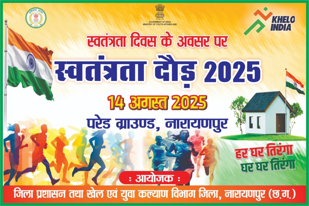 नारायणपुर 12 अगस्त 2025/ स्वतंत्रता दिवस के अवसर पर जिला प्रशासन और खेल एवं युवा कल्याण विभाग द्वारा 14 अगस्त 2025 को स्वतंत्रता दौड़ का आयोजन किया जाएगा। जिसमें शहर के विभिन्न वर्गों की भागीदारी देखने को मिलेगी। इस दौड़ में स्थानीय जनप्रतिनिधि, गणमान्य नागरिक, अधिकारी-कर्मचारी, स्कूल-कॉलेज के युवाओं सहित पुलिस एवं होमगार्ड के जवान तथा खेल संघों के पदाधिकारी एवं खिलाड़ी शामिल होंगे। यह आयोजन देशभक्ति और एकता का संदेश देने का एक महत्वपूर्ण प्रयास है। स्वतंत्रता दौड़ का शुभारंभ गुरुवार 14 अगस्त को प्रातः 7 बजे परेड ग्राउंड मैदान से प्रारंभ होकर पुराना बस स्टैंड, जय स्तंभ चौक, चांदनी चौक, सुभाष चंद्र बोस चौक, घड़ी चौक होते हुए खेल मैदान में समापन होगा।