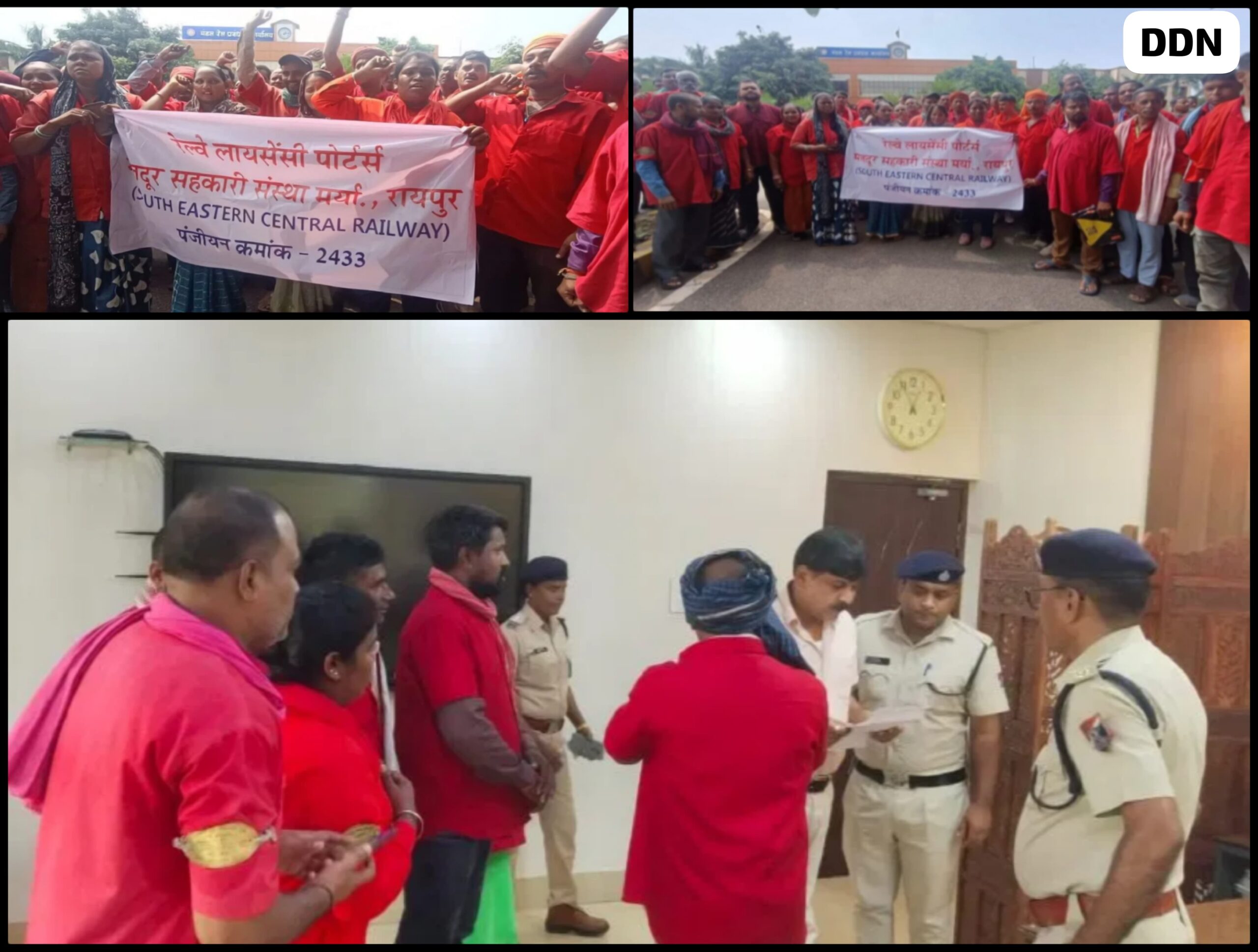 बैटरी वाहनों के कारण कुली समुदाय परिवार के भरण – पोषण के लिए चिंतित ।DRM ऑफिस में कुलियों का प्रदर्शन, बैटरी वाहनों के परिचालन का किया विरोध, परिवार के भरण-पोषण की चिंता