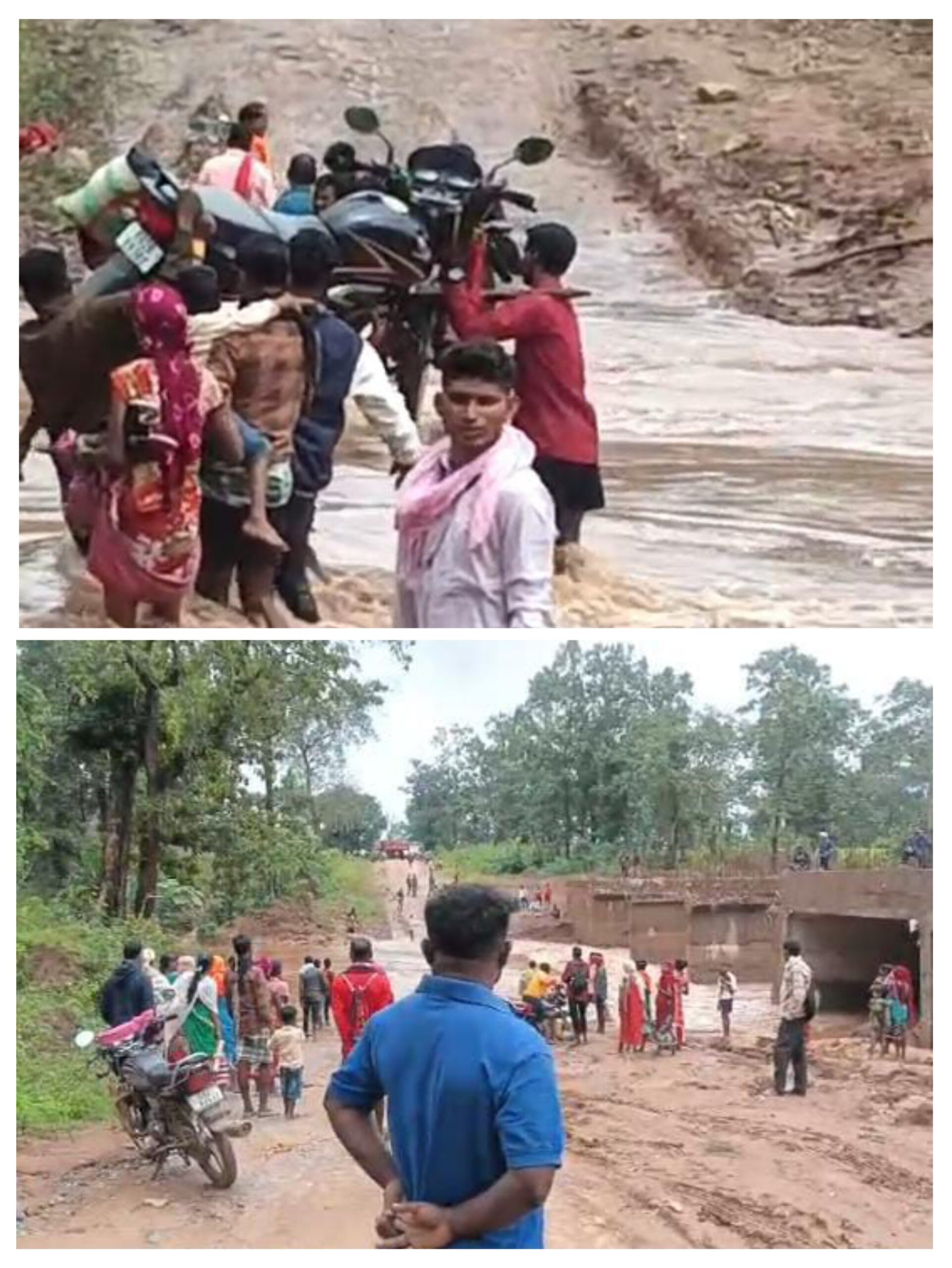 Chhattisgarh: मूसलाधार बारिश से ओरछा पिनगुंडा में पुलिया में बाढ़ आवागमन हुआ बाधित लोग जान जोखिम में डालकर कर रहे नदी पार