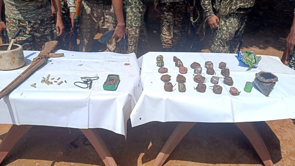 सुरक्षा बलों ने अबूझमाड़ क्षेत्रांतर्गत थाना धनोरा के मोहनार-तोयापारा मुख्य मार्ग से विस्फोटक पदार्थ, युद्धक सामग्री और दैनिक उपयोग की वस्तु किया बरामद