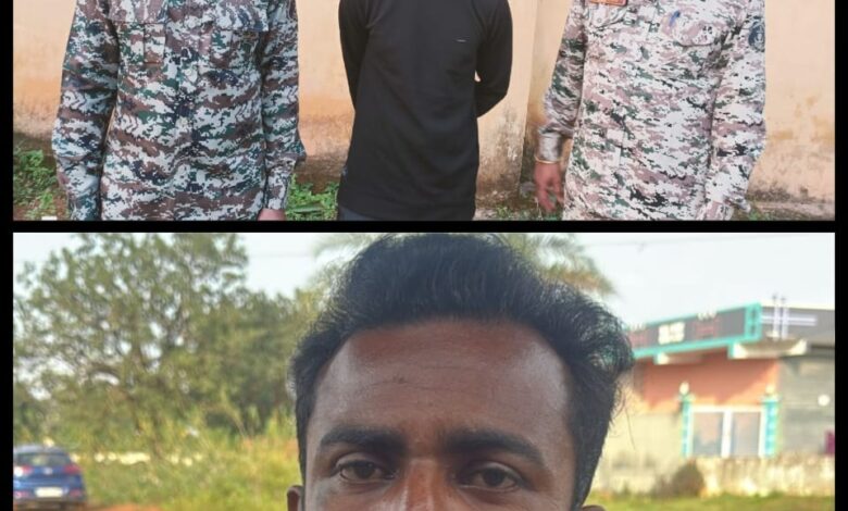 आरोपी किशन विश्वकर्मा उर्फ राहुल (उम्र 33 वर्ष, लोहार जाति) निवासी पखांजूर को किया नारायणपुर पुलिस ने हुआ गिरफ्तार।