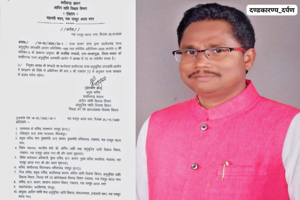 रायपुर-छत्तीसगढ़ सरकार ने रूपसिंह मंडावी को राज्य अनुसूचित जनजाति आयोग का नया अध्यक्ष नियुक्त किया है यह घोषणा अक्टूबर 2025 में की गई है