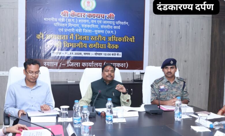 सुकमा/ मंत्री वन एवं जलवायु परिवर्तन विभाग तथा सुकमा जिले के प्रभारी मंत्री श्री केदार कश्यप ने मंगलवार को कलेक्ट्रेट सभाकक्ष में जिले के विभिन्न विभागों की समीक्षा बैठक ली। बैठक में उन्होंने कहा कि शासन की योजनाओं का वास्तविक परिणाम धरातल पर स्पष्ट रूप से दिखाई देना चाहिए, जिससे प्रत्येक पात्र हितग्राही को योजनाओं का पूर्ण लाभ समय पर मिल सके।