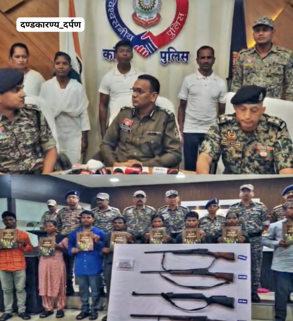 कांकेर और गढ़चिरौली में 15 इनामी नक्सलियों ने हथियार डाल कर किया आत्मसमर्पण जिनमें से कई पर कुल मिलाकर ₹1 करोड़ से अधिक का इनाम घोषित है-नक्सल मोर्चे पर सुरक्षा बलों को लगातार बड़ी सफलता मिल रही है, इस बीच बुधवार को एक बार फिर नक्सली संगठनों को करारा झटका लगा- जब छत्तीसगढ़-महाराष्ट्र बॉर्डर (गढ़चिरौली) क्षेत्र के 11 सक्रिय नक्सलियों ने हथियार डालकर मुख्यधारा में लौटने का फैसला किया है-इन आत्मसमर्पित नक्सलियों में कुख्यात नक्सली विनोद सैयाना भी शामिल है इस फैसले से क्षेत्रों में शांति और सुरक्षा प्रयासों की दिशा में एक सकारात्मक कदम माना जा रहा है