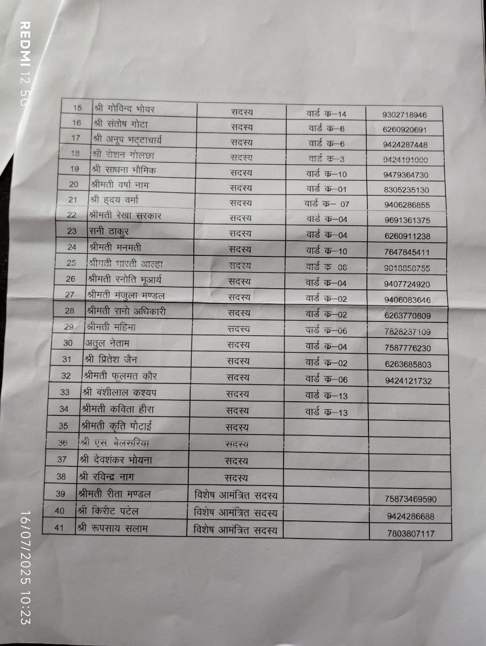 जिला अध्यक्ष संध्या पावर की सहमति से 41 सदस्यीय टीम बनाई है। कार्यकारिणी में चार उपाध्यक्ष और तीन मंत्री नियुक्त किए गए हैं। एक कार्यालय प्रभारी और एक मीडिया प्रभारी भी चुने गए हैं। महिला सशक्तिकरण को बढ़ावा देते हुए टीम में 14 महिलाओं को स्थान मिला है।