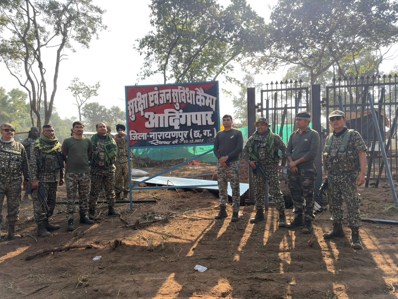 इसी कड़ी में थाना कोहकामेटा के ग्राम आदिनपार क्षेत्र में नक्सल विरोधी अभियानों एवं कोहकामेटा-कच्चापाल-कुतुल-कोड़नार-धोबे एक्सिस तक सड़क निर्माण कार्य में सुरक्षा प्रदान करने एवं विकास कार्यो में सहयोग पहुंचाने के उद्देश्य से दिनांक 23-12-2025 को नारायणपुर पुलिस ने घोर नक्सल प्रभावित माड़ क्षेत्र माओवादियों के आश्रय स्थल ग्राम आदिनपार में नवीन कैम्प स्थापित किया गया है। ग्राम आदिनपार में नवीन कैम्प स्थापित होने से क्षेत्र के ग्रामीणों में काफी उत्साह एवं सुरक्षा का माहौल बना हुआ है। नवीन कैम्प कोड़नार थाना कोहकामेटा क्षेत्रान्तर्गत स्थित है तथा जिला मुख्यालय नारायणपुर से 56 किलोमीटर थाना कोहकामेटा से 28 किलोमीटर, कच्चापाल से 19 किलोमीटर, कुतुल से 12 किलोमीटर और कोडनार से 6 किलोमीटर की दूरी पर स्थित है।