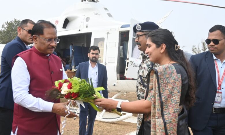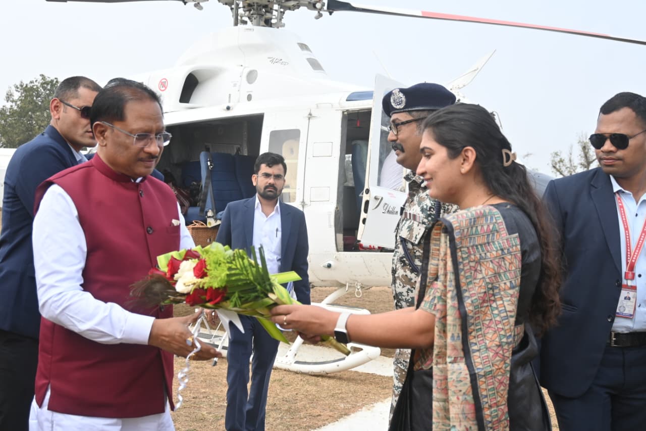 मुख्यमंत्री श्री विष्णु देव साय को नारायणपुर चिपरेल हेलीपैड में जनप्रतिनिधियों और अधिकारियों ने किया आत्मीय स्वागत