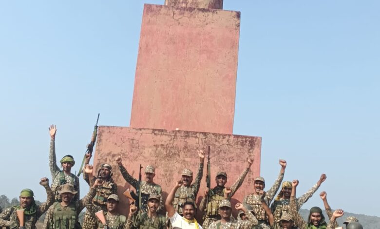 नारायणपुर पुलिस एवं 41 BN आई.टी.बी.पी. के जवानों ने नक्सलियों के अघोषित राजधानी कुतुल के भीतर ग्राम फरसगांव में निर्मित विशालकाय नक्सल स्मारक को किया जमींदोज