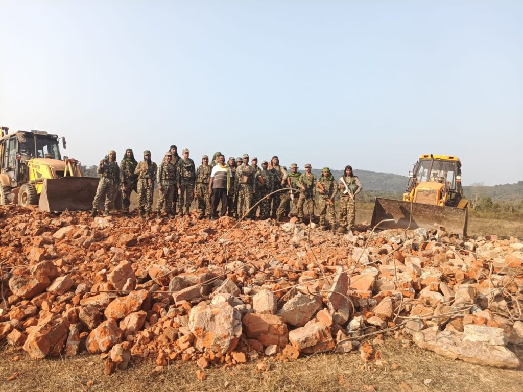 इसी तारतम्य में कल दिनांक 06-02-2026 को नक्सल विरोधी ‘‘माड़ बचाओ’’ अभियान के अंतर्गत जिला पुलिस बल एवं 41 वीं वाहिनी आई.टी.बी.पी. की संयुक्त टीम नक्सल विरोधी अभियान, एरिया डॉमिनेशन हेतु कुतुल, फरसगांव एवं आसपास के क्षेत्रों की ओर रवाना हुई थी; कि पुलिस सहायता केंद्र कुतुल (थाना कोहकामेटा) क्षेत्रान्तर्गत ग्राम फरसगांव में नक्सलियों द्वारा विशालकाय नक्सली स्मारक बनाया गया था, जिसे सुरक्षा बलों द्वारा जेसीबी के माध्यम से जमींदोज किया गया है।