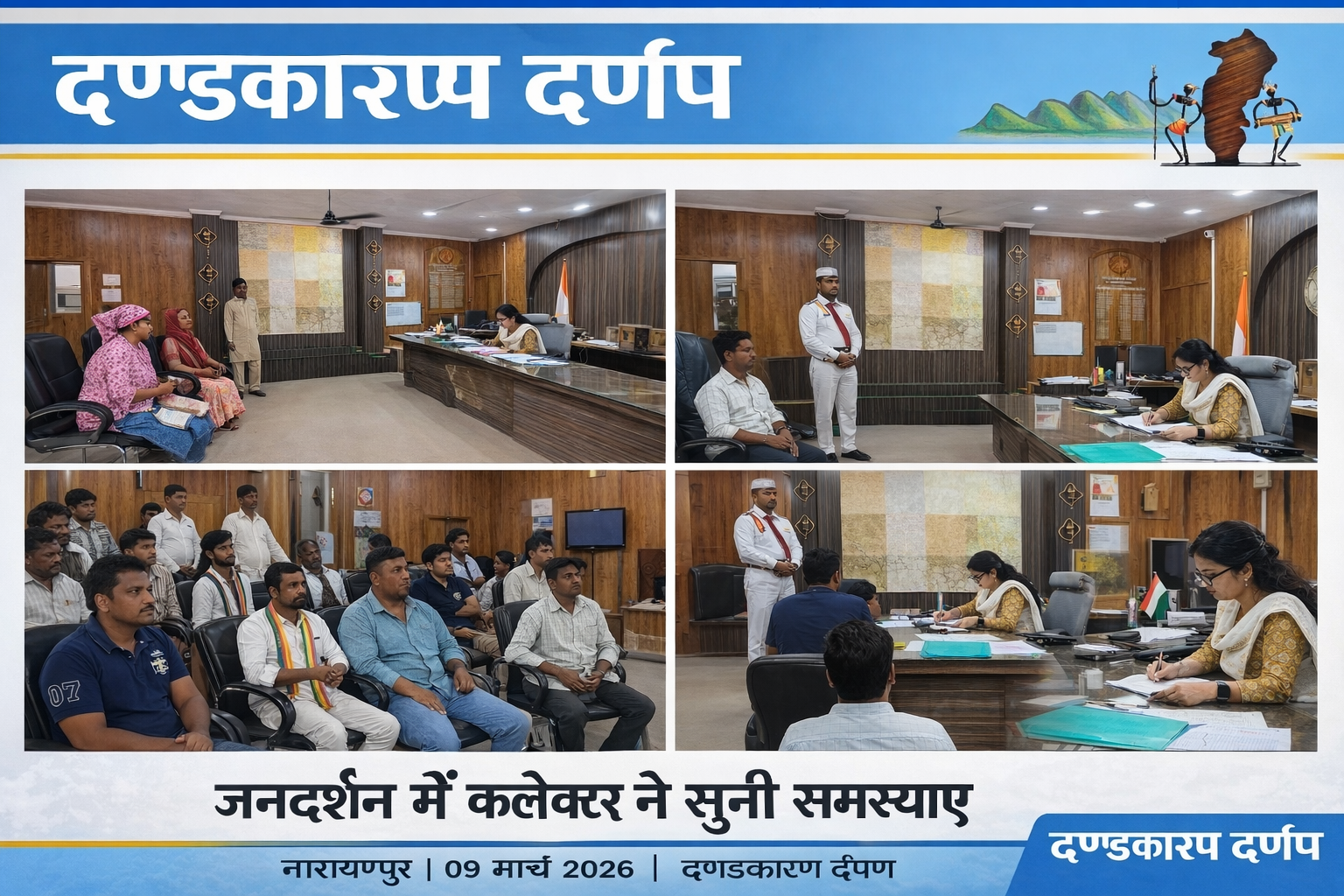 नारायणपुर- जिले में आयोजित साप्ताहिक जनदर्शन कार्यक्रम में कलेक्टर ने आम लोगों की समस्याएं सुनीं और संबंधित अधिकारियों को जल्द कार्रवाई करने के निर्देश दिए।