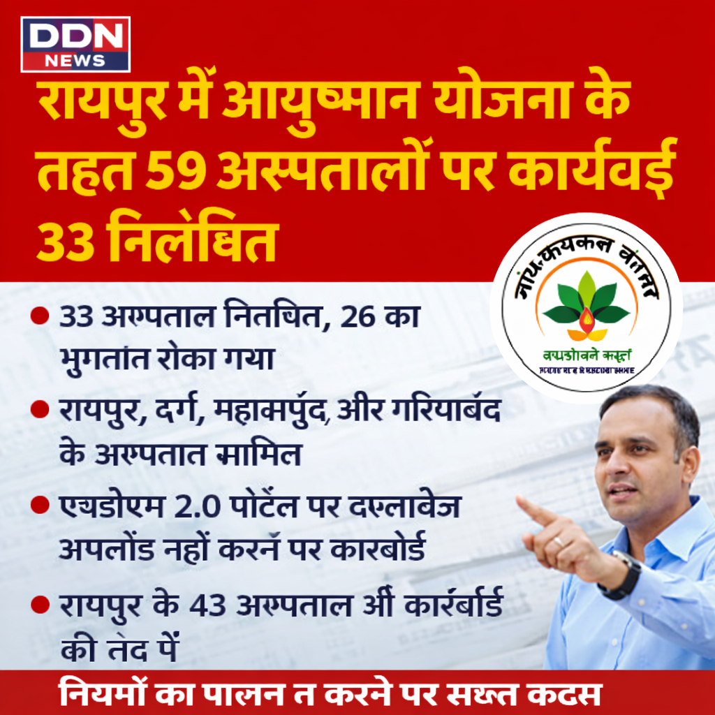 रायपुर में आयुष्मान योजना के तहत 59 अस्पतालों पर कार्रवाई, 33 निलंबित