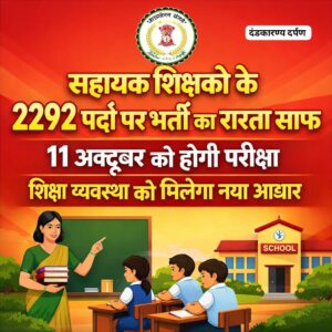 सहायक शिक्षकों के 2292 पदों पर भर्ती का रास्ता साफ, 11 अक्टूबर को होगी परीक्षा, शिक्षा व्यवस्था को मिलेगा नया आधार