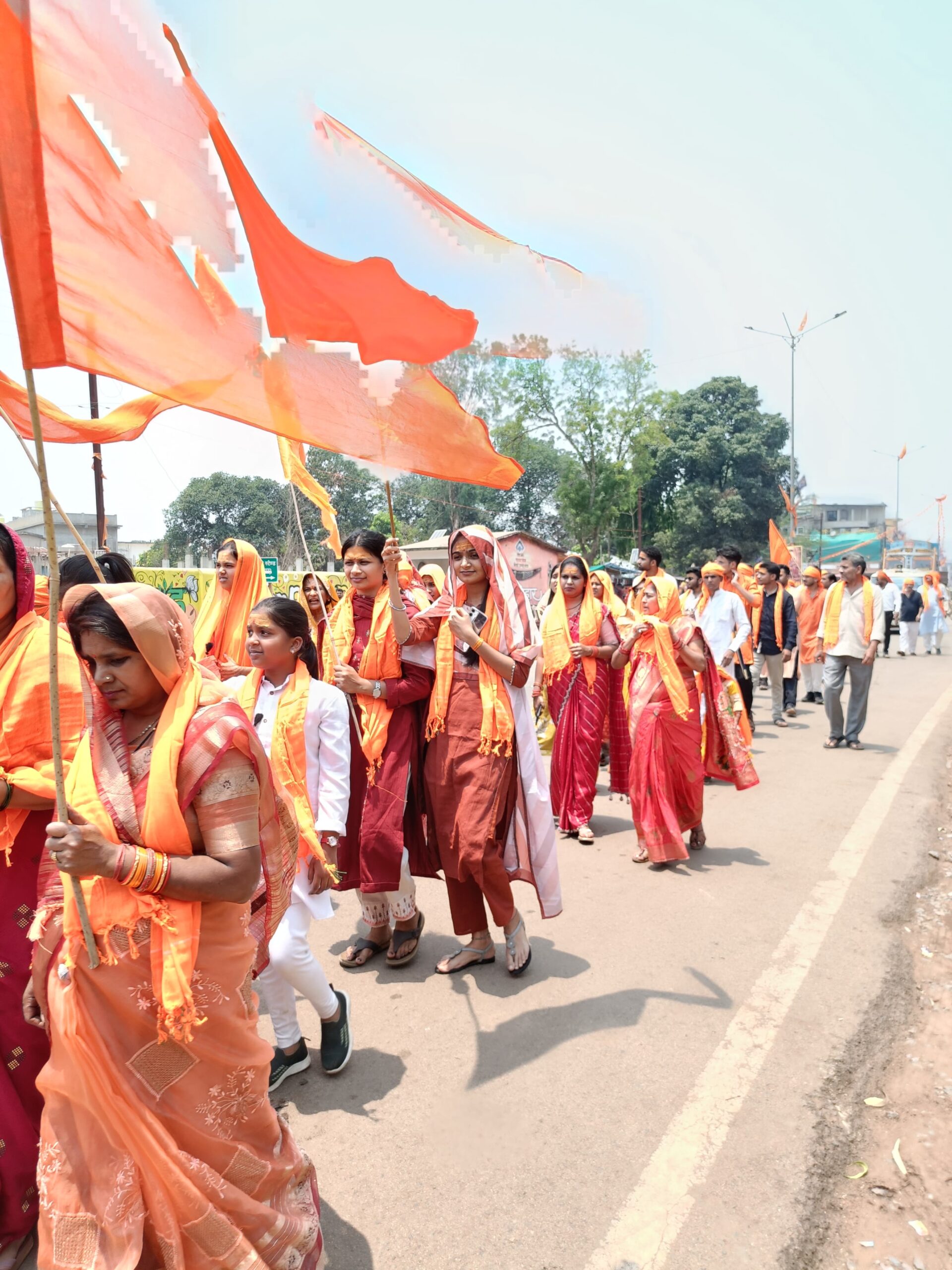 शोभायात्रा नगर के प्रमुख मार्गों जय स्तंभ चौक, गायत्री मंदिर, चांदनी चौक, सोनपुर रोड और मेन रोड से होकर पुनः सामाजिक भवन पहुंची। यात्रा के दौरान जयकारों, भजनों और धार्मिक नारों से पूरा शहर गूंज उठा और माहौल पूरी तरह भक्तिमय बना रहा।