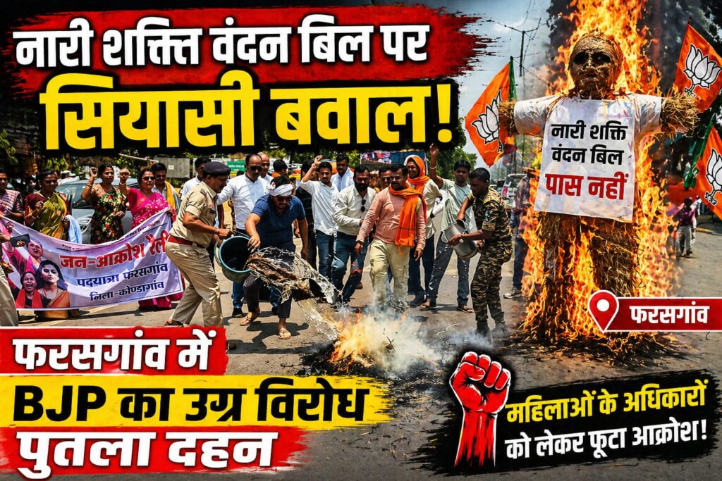 नारी शक्ति वंदन बिल को लेकर देशभर में जारी राजनीतिक हलचल के बीच कोंडागांव जिले के फरसगांव में भाजपा कार्यकर्ताओं का आक्रोश खुलकर सामने आया। संसद में इस बहुचर्चित विधेयक के पारित नहीं होने से नाराज कार्यकर्ताओं ने जोरदार विरोध प्रदर्शन करते हुए अपनी नाराजगी जाहिर की।