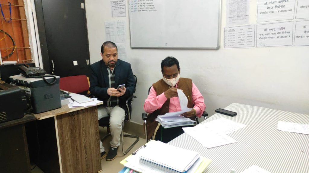 धमतरी: सीएमएचओ के कार्यालय में कलेक्टर पीएस एल्मा ने कोविड-19 की नियमित समीक्षा की बात कही, लेकिन कोविड प्रोटोकॉल का हुआ खुला उल्लंघन।