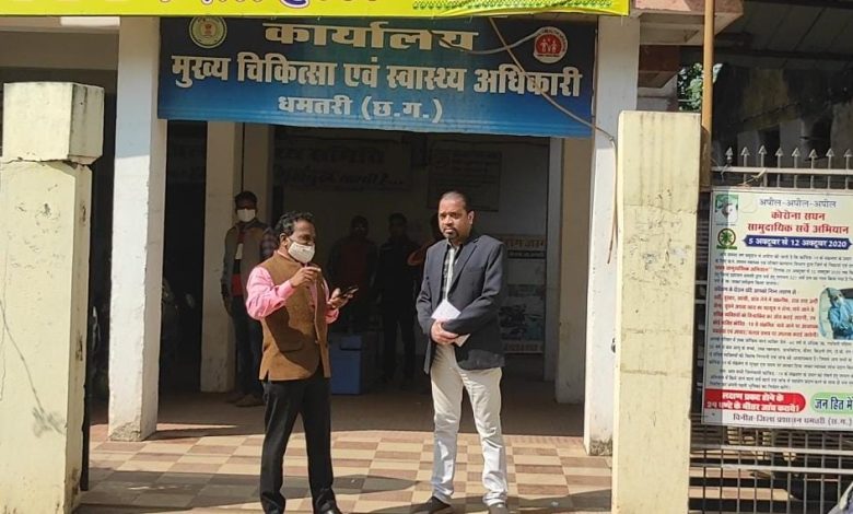 धमतरी के सीएमएचओ कार्यालय में आज कलेक्टर ने औचक निरीक्षण कर दिया लेकिन जब मीडिया से बात की तो इसे कलेक्टर ने कोविड-19 की नियमित समीक्षा बताया। वहीं, कलेक्टर एवं जिला दंडाधिकारी पीएस एल्मा के सामने ही कोविड प्रोटोकॉल का खुला उल्लंघन होता रहा। उसके बाद भी कलेक्टर ने डीपीएम राजीव बघेल को टोकने की जहमत नहीं उठाई। इन तस्वीरों में आप देख सकते हैं।