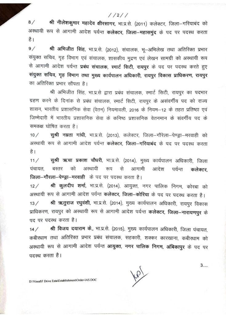 राज्य शासन ने किये 16 आईएएस अधिकारियों के तबादले नारायणपुर में नए कलेक्टर ऋतुराज रघुवंशी तो वहीं धर्मेश साहू- संचालक- भू अभिलेख।