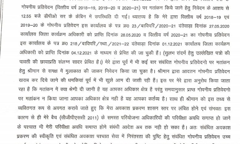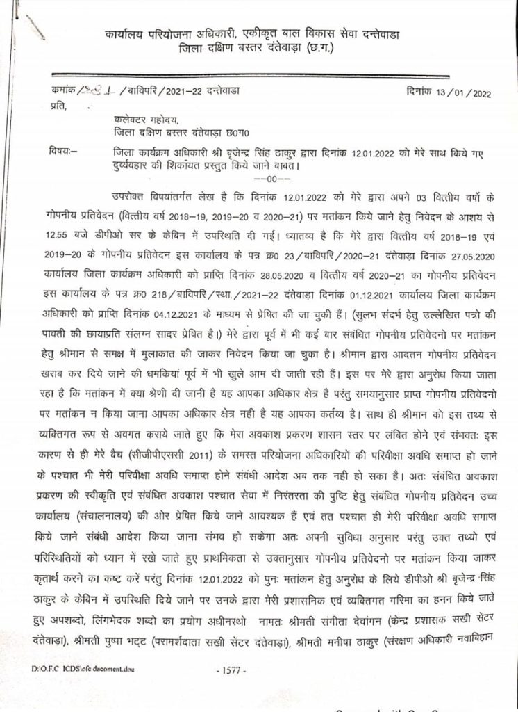 दंतेवाड़ा: महिलाओं की गरिमा के प्रहरी महिला एवं बाल विकास विभाग के आला अधिकारी द्वारा विभागीय महिला अधिकारी की गरिमा हनन का मामला .