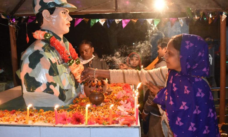 शहीद श्री देवनाथ पुजारी के स्टेच्यू में माल्यार्पण कर जलाया गया मोमबत्ती