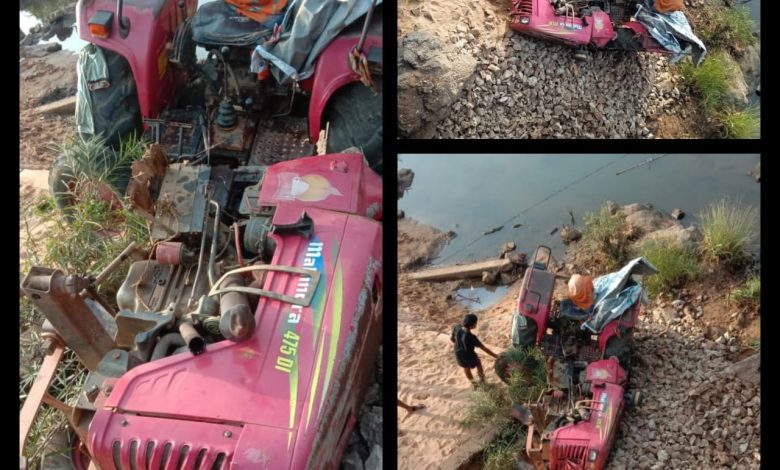 नारायणपुर ओरछा मुख्य मार्ग में हादसा: माडीन नदी के पुल से नीचे गिरी गिट्टी से भरी ट्रैक्टर, रेलिंग न होने से दुर्घटना