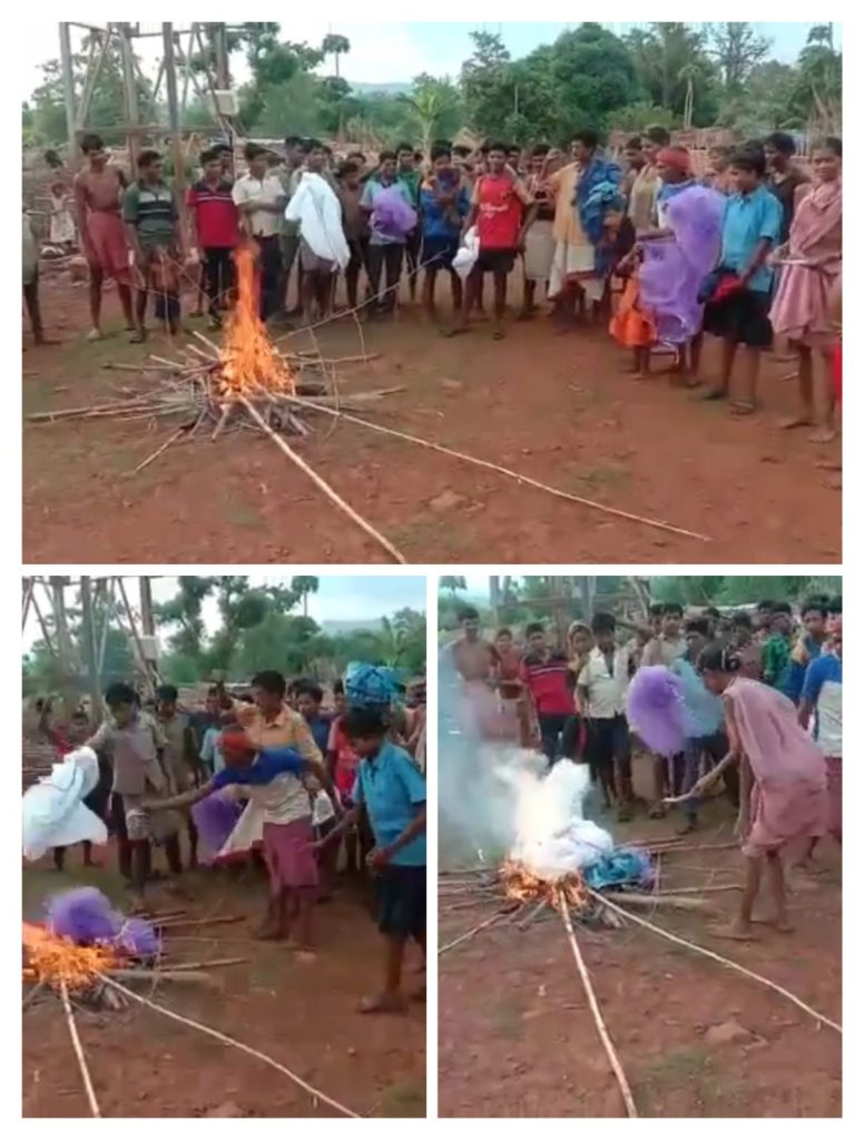 नारायनपुर: जिले के ओरछा ब्लॉक के ग्राम कोडोनार के ग्रामीणों ने बीएसएफ जवानों के द्वारा दी गई सामानों को सामूहिक रूप से बहिष्कार किया और आग लगा कर जला दिया , ग्रामीणों का कहना हैं कि कांकेर जिले के छोटे बेटियां और मारबेड़ा कैंप के बीएसएफ जवान 16 जून को गांव में आये थे।