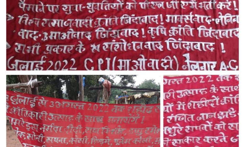 शहीदी सप्ताह को सफल बनाने नक्सलियों ने लगाए बैनर पोस्टर, पुलिस ने तेज की सर्चिंग