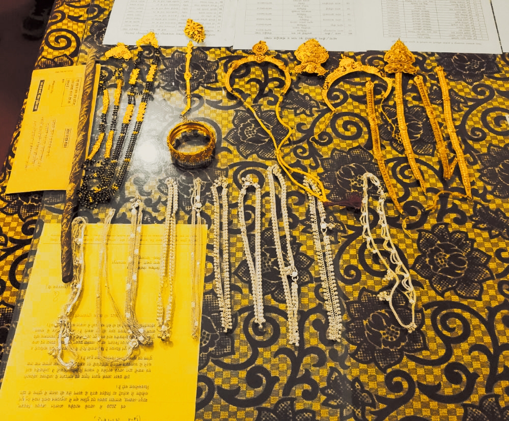 जप्त मशरूका 01 चांदी का करधन 10 नग कीमती 35000 02 अर्टिफिश्यली ज्वेलर्स कँगन ,नेकलेस,मगलसूत्र कीमती 20000 कुल कीमती 55000 तथा घटना में प्रयोग किया गया लोहे का रोड एवं नगद 110 को जप्त किया गया *उक्त चोरी के निराकरड करने में टी एस नवरंग थाना प्रभारी नारायणपुर , उप निरि0 विकास देशमुख,स0 उ0 नी0 छबिराम नुरेटी,नारायण सिंह पोया , प्रधान आरक्षक सुजीत देवनाथ ,आरक्षक सुरेंद्र बघेल ,शंकर गोटा,गोविन्द पटेल ,सुनील साहू ,म0 आर0 खूशबू भू रा एवं रूमंत देवांगन साइबर सेल का विशेष योगदान रहा **नाम आरोपी* 01 कैलाश कावड़े पिता चैनु राम उम्र 21साल निवासी कलरखा नारायणपुर 02 विधि से संघर्ष रत बालक