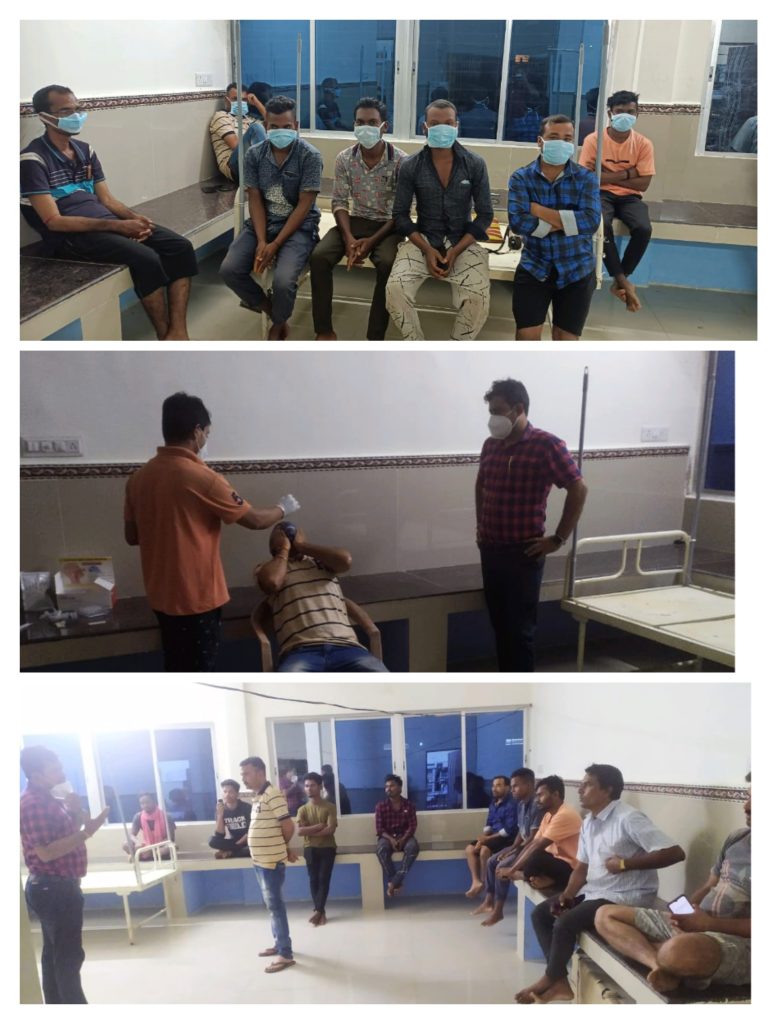 नारायणपुर- जिला फिर से कोरोना विस्फोट हुआ नारायणपुर से महज 35 किमी की दूरी पर ग्राम धौड़ाई में एक साथ 8 लोग कोरोना संक्रमित पाए गए। धौड़ाई में मिलती है 24×7चिकित्सा सेवाएं बीती रात प्राथमिक स्वास्थ्य केंद्र धौडाई में कोरोना की जांच के दौरान एक मरीज़ पॉजिटिव मिला। जिसके स्वास्थ्य को संज्ञान में लेते हुए आवश्यक दवाइयां देकर उस कोरोना के मरीज़ को होम आइसोलेशन में रहने को कहा गया था। रात को जब डॉक्टर कमलेश इज़ारदार एवम मोहित सिन्हा (एम. एल. टी.) के द्धारा होम आइसोलेशन का औचक निरीक्षण किया गया तो दरवाजे के सामने दर्जन भर चप्पलों को देखकर दोनों हैरान रह गए और आशंका भी हुआ कि शायद होम आइसोलेशन ब्रेक हो गया होगा। जब दरवाजा खटखटाए तो पाया कि एक कमरे के अंदर दस लोग थे। डॉक्टर ने सबसे पहले उसके स्वास्थ्य की जानकारी ली और उसके संपर्क में आए हुए सभी लोगों का कॉन्टैक्ट ट्रेसिंग कर पीएचसी में जाकर कोरोना जांच करवाने के लिए काउंसलिंग किया । लोग तैयार हुए और रात को लगभग 10 बजे, संपर्क में आए हुए लोगों का कोरोना जांच हुआ जिसमें कुल 17 में से 8 लोग पॉजीटिव पाए गए। तत्काल डॉक्टर ने अपने उच्च अधिकारी को अवगत कराया और दवाइयां देकर होम आइसोलेशन किया।