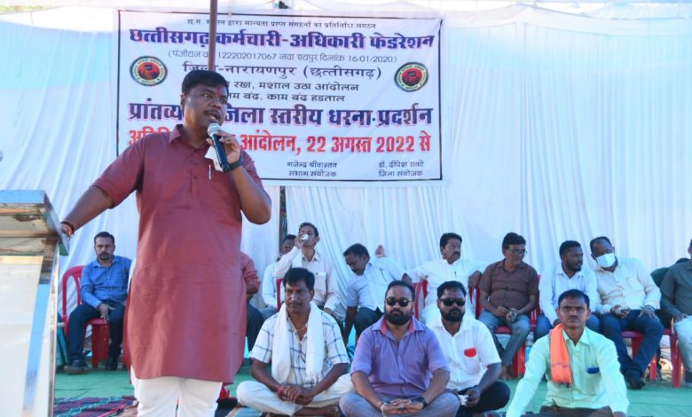 नारायणपुर-पूर्व शिक्षा मंत्री और भाजपा प्रदेश प्रवक्ता केदार कश्यप आज राज्य के कर्मचारियों और अधिकारियों की हड़ताल का समर्थन करने नारायणपुर के साप्ताहिक बाजार स्थल मे पहुंचे। DA और HRA की मांग कर रहे प्रदेश के लगभग 5 लाख कर्मचारियों और अधिकारियों का समर्थन करते हुए श्री कश्यप ने कहा कि राज्य सरकार कर्मचारियों का अधिकार छीन रही है , सरकार याद रखे की महंगाई भत्ता सभी कर्मचारियों का हक है। सरकार की इसी वादाखिलाफी के कारण राज्य के सभी वर्गो में आक्रोश व्याप्त है ।श्री कश्यप ने कहा कि सरकार बनाने के लिए कांग्रेस ने कर्मचारियो अधिकारियों सहित अन्य वर्ग से बहुत से वादे किए पर सरकार बनने के बाद ये सरकार अपनी जिम्मेदारी से भाग रही है । सरकार किसी गुमान में न रहे कि वो महंगाई भत्ता देकर कोई अहसान कर रही है , कर्मचारियों को अपने अधिकार के लिए अगर आज लड़ना पड़ रहा है तो ये इस सरकार के लिए शर्म की बात है । श्री कश्यप ने कहा कि राज्य में जब भारतीय जनता पार्टी की सरकार थी तो सभी कर्मचारियों को केंद्र से घोषित महंगाई भत्ता एक महीने के भीतर मिल जाया करता था । 2023 में जब फिर से भाजपा की सरकार बनेगी तो आप सभी को अपनी हक के लिए लड़ना नही पड़ेगा , मैं इस मंच के माध्यम से आपको आश्वस्त करना चाहता हूं हड़ताल का समर्थन करने सभास्थल पहुंचने वालों में भाजपा जिलाध्यक्ष बृजमोहन देवांगन,रतन दुबे,संजय नंदी,मरण शील,प्रताप मंडावी,जयप्रकाश शर्मा,सुदीप झा सहित अन्य भाजपा पदाधिकारी व कार्यकर्ता उपस्थित थे ।