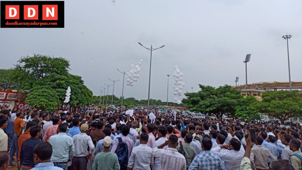 Raipur – विगत 10 दिनों से प्रदेश के 40000 स्वास्थ्य विभाग के डॉक्टर्स एवम् अधिकारी- कर्मचारी अपनी जायज पाँच सूत्रीय मांगों को लेकर नवा रायपुर स्थित तूता धरना स्थल में प्रदर्शन रत थे, उसके बाद शासन ने माननीय राहुल गांधी जी के कार्यक्रम का हवाला देते हुए आंदोलनकारियों को खदेड़ कर इंटरनेशनल क्रिकेट स्टेडियम में भेज दिया गया, ये सभी अपनी मांगों को माननीय राहुल गांधी जी के समक्ष रखना चाहते हैं, परन्तु उनहोने अपनी कुर्सी जाने की डर से राहुल गांधी की पहुंच से भी इन लोगों को दूर करने का प्रयास किया जा रहा है।