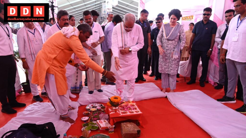 रायपुर, 21 सितम्बर 2023/मुख्यमंत्री श्री भूपेश बघेल दुर्ग जिले के भिलाई नगर के जयंती स्टेडियम में आयोजित महिला समृद्धि सम्मेलन में क्षेत्रवासियों को 309 करोड़ 56 लाख 88 हजार रूपए के 186 विकास कार्याे की सौगात दिया। इन विकास कार्यों में 241 करोड़ 59 लाख रूपए की लागत के 123 कार्यों का भूमिपूजन तथा 67 करोड़ 97 लाख रूपए की लागत के 63 कार्यों का लोकार्पण शामिल है। कार्यक्रम में श्रीमती प्रियंका गांधी मुख्य अतिथि के रूप में शामिल हुई।